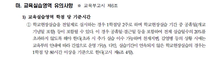 ※ 실습진행 중 학사일정 변경으로 4일을 초과하게 된 경우에는 추후 이메일 문의바랍니다.