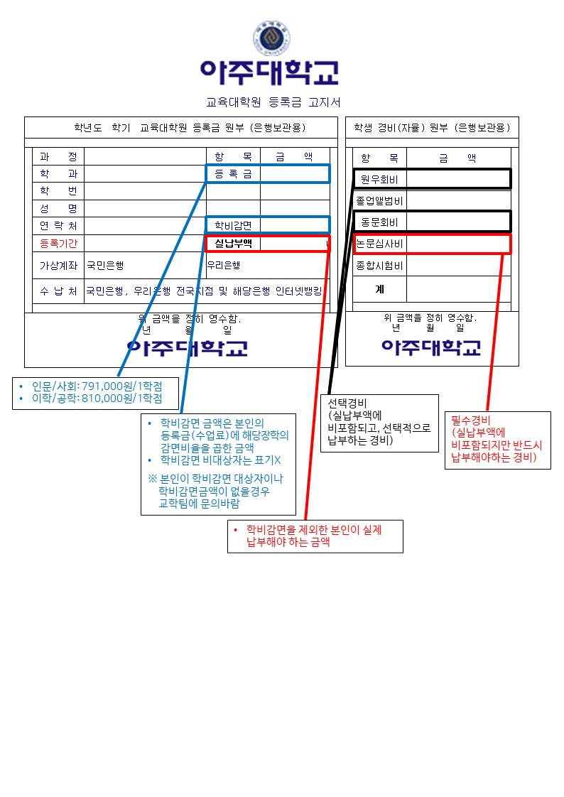 ※ 고지서 확인 후 등록금액에 문의가 있을 시 교학팀(031-219-1949)로 문의주시기 바랍니다.