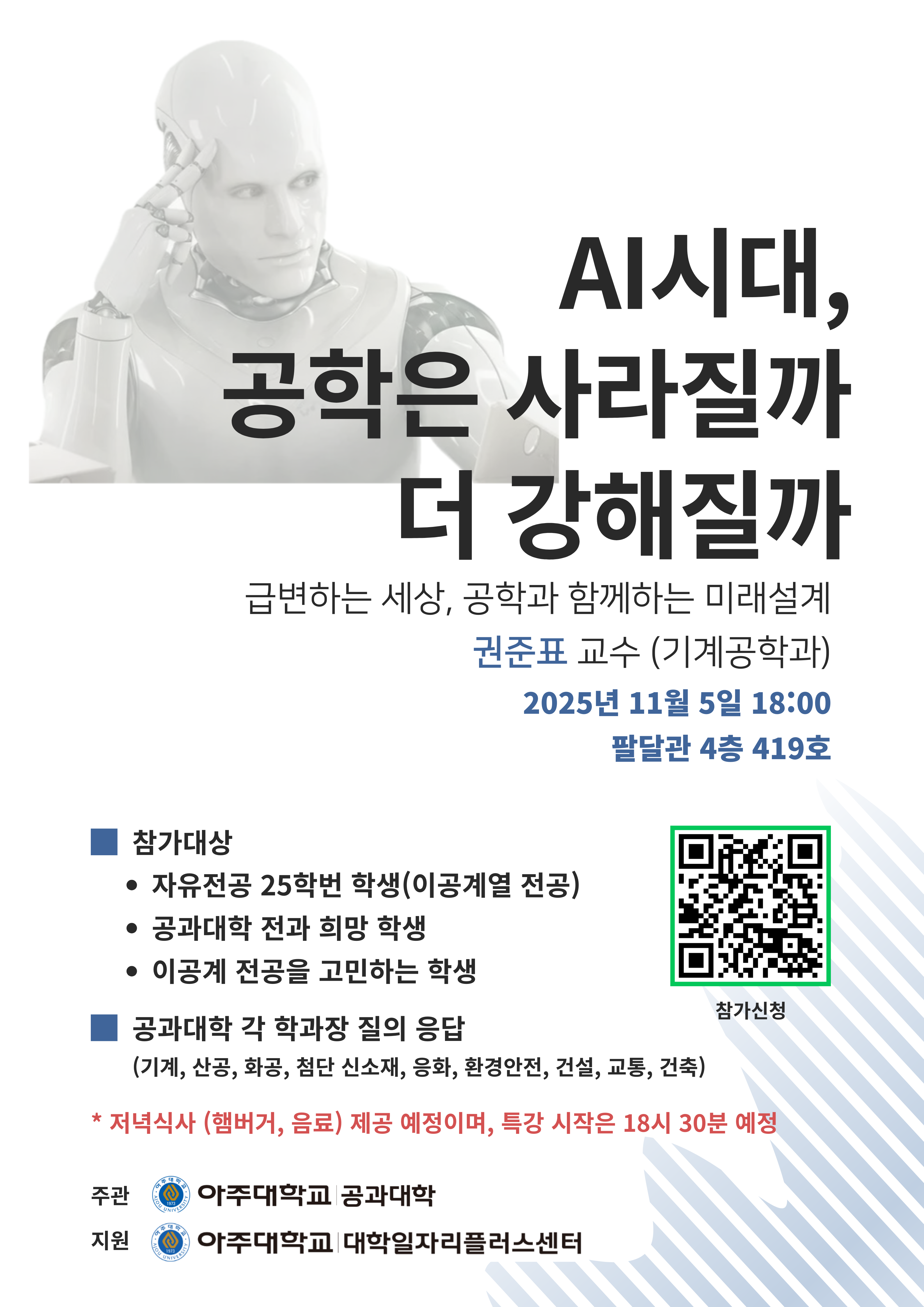 공과대학 학과 설명회 및 AI 관련 특강 안내 (11.05(수))