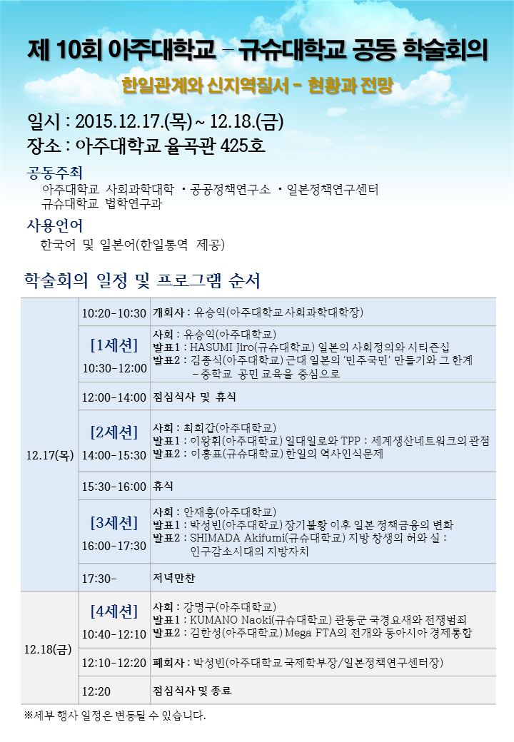 [사회과학대학] 제 10회 아주대학교 - 규슈대학교 공동학술회의 개최 안내